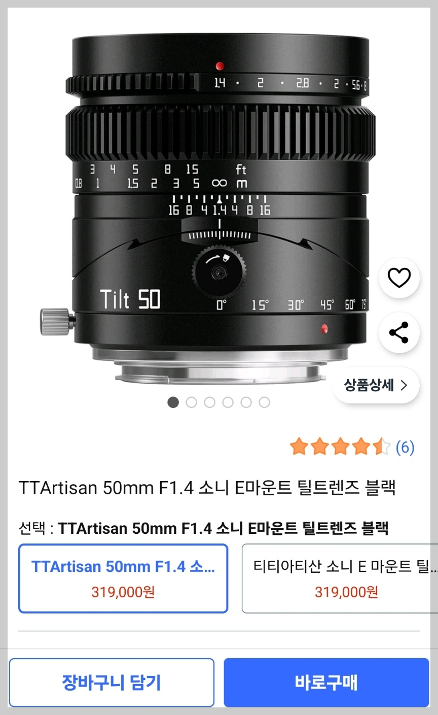 티티아티산 틸트 렌즈 50mm f1.4 렌즈 (SONT E-마운트)